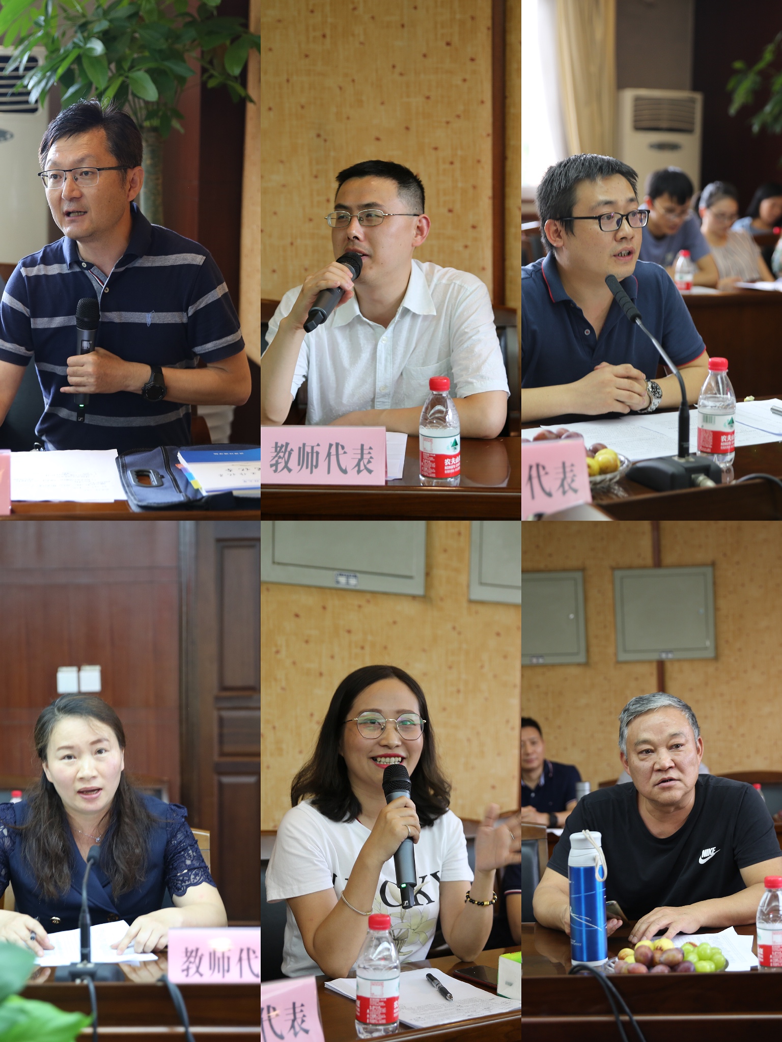 在座谈会中,骨干一线教师、离退休教师、辅导员、青年教师联合会教师代表等表达了学校的热爱之情与强烈的归属感,并就围绕庆祝抗日战争胜利75周年、新冠疫情冲击下的高等教育新形势等热点话题,对高等教育大发展的背景下学校学科和专业发展、博士点授予权申报、师资队伍建设、人才培养工作、学生心理健康问题等各方面积极建言献策。何建新、舒红平还分别就老师们关心的一线教学、科研等工作中遇到的问题作出回应。