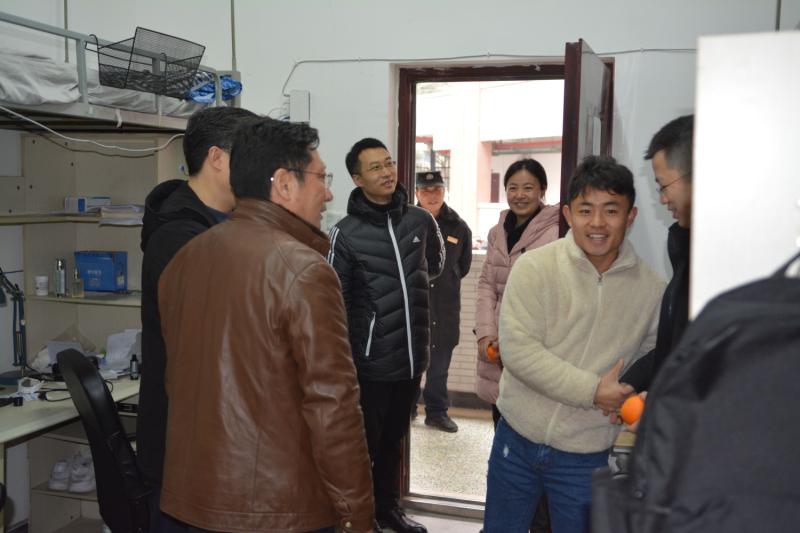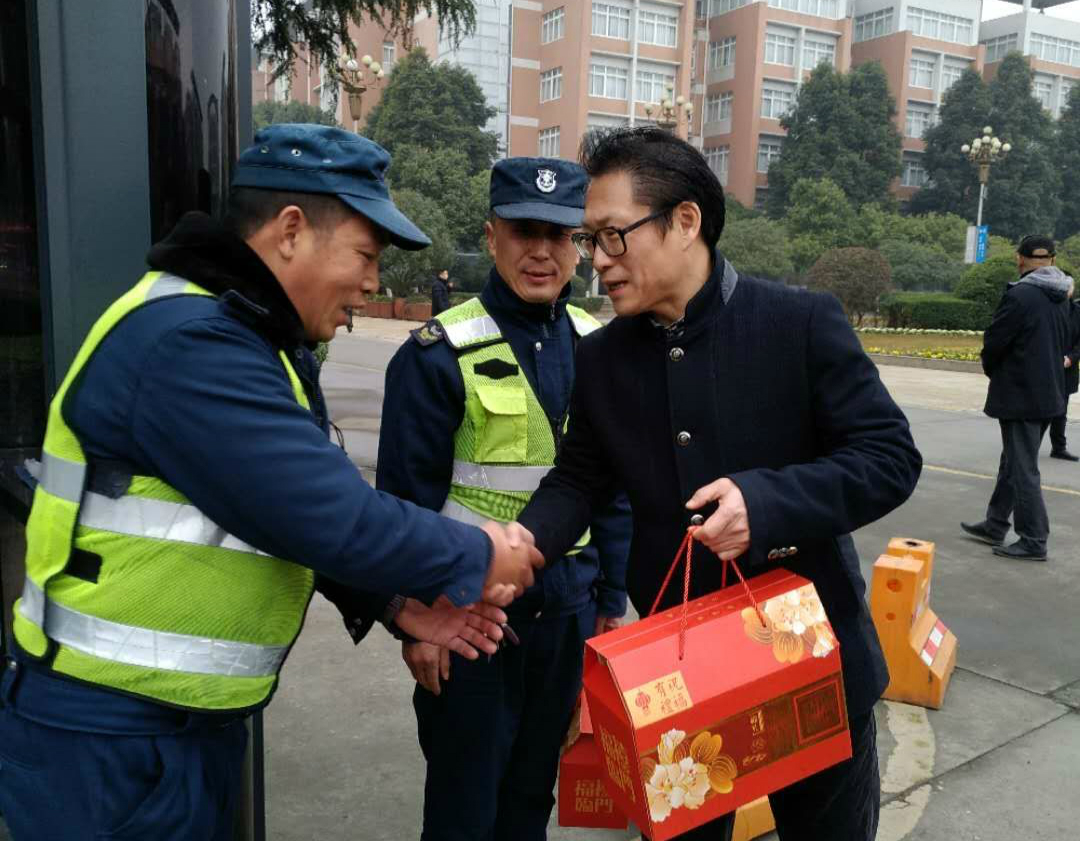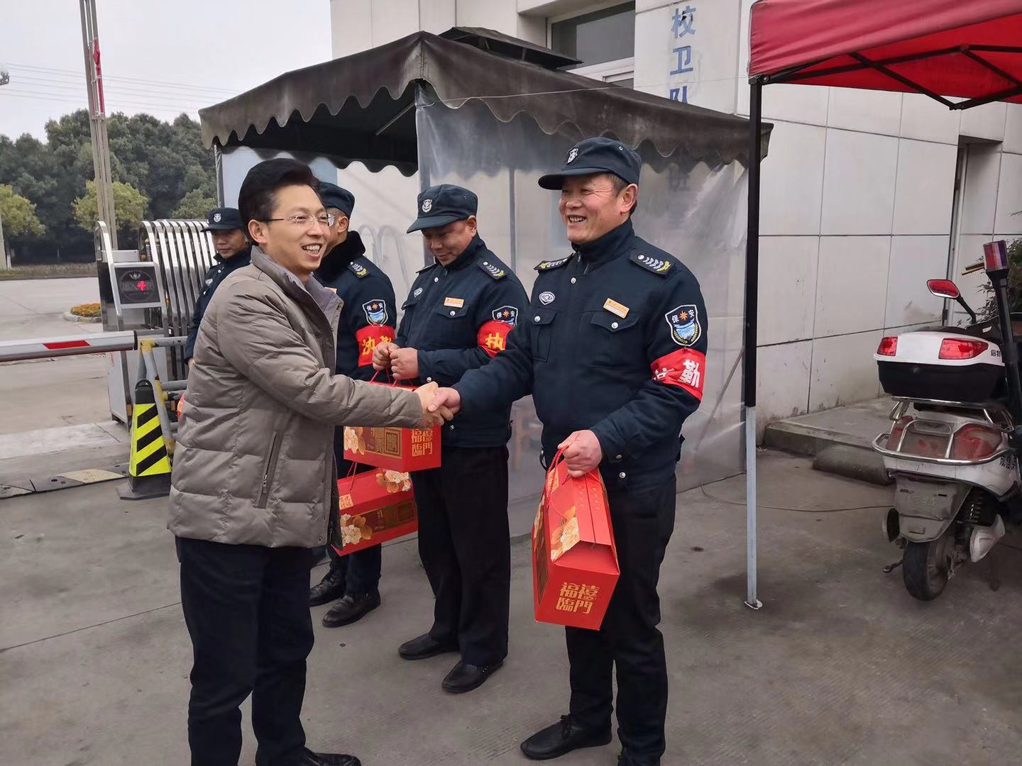 【本网讯】1月31日下午,学校党委副书记马洪江、副校长于世祥、肖月强带队分赴两校区看望慰问假期在岗值守的一线工作人员和留校学生,并向大家致以美好的新春祝福。