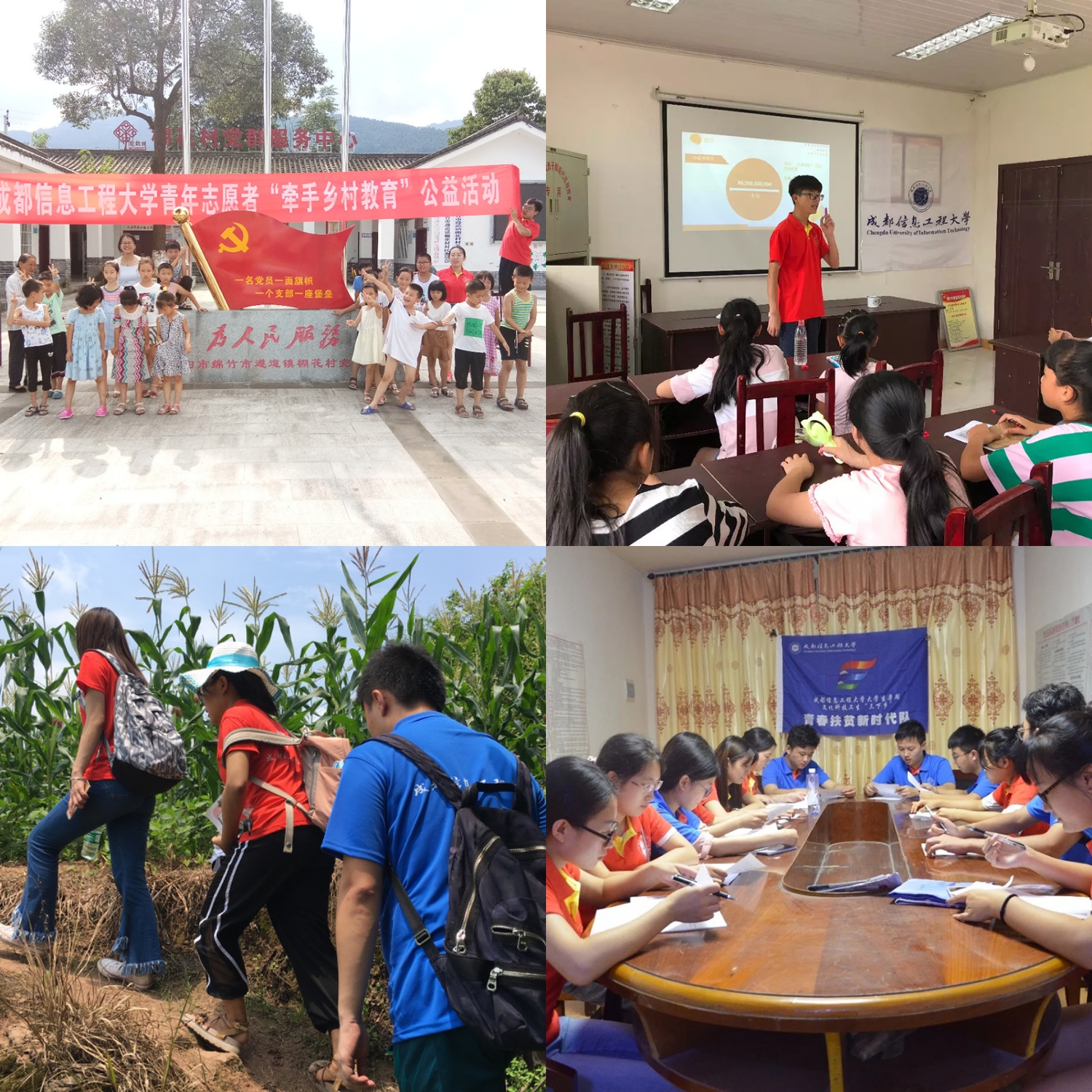 2018年,我校暑期社会实践以庆祝改革开放40周年为契机,紧密围绕“青春大学习 奋斗新时代”这一主题,按照“目标精准化、工作系统化、实施项目化、传播立体化”和“按需设项、据项组团、双向受益”的工作原则,共组建了包括团中央专项团队、“气象防灾减灾宣传志愿者中国行”项目团队和校级立项团队在内的420余支暑期社会实践队伍,3600余名师生,深入到贫困县、农村乡镇、城市社区、厂矿企业等,开展红色教育、扶贫调研、关爱留守儿童、防灾减灾等形式的社会实践活动。活动得到了实践地群众、单位、政府的支持和赞扬,受到中国青年网、中青在线、学校新媒体等多个平台的报道。成信学子以实际行动助力精准扶贫,服务乡村振兴战略,切实感受改革开放40年取得的新成就新面貌,勇做担当民族复兴大任的时代新人。