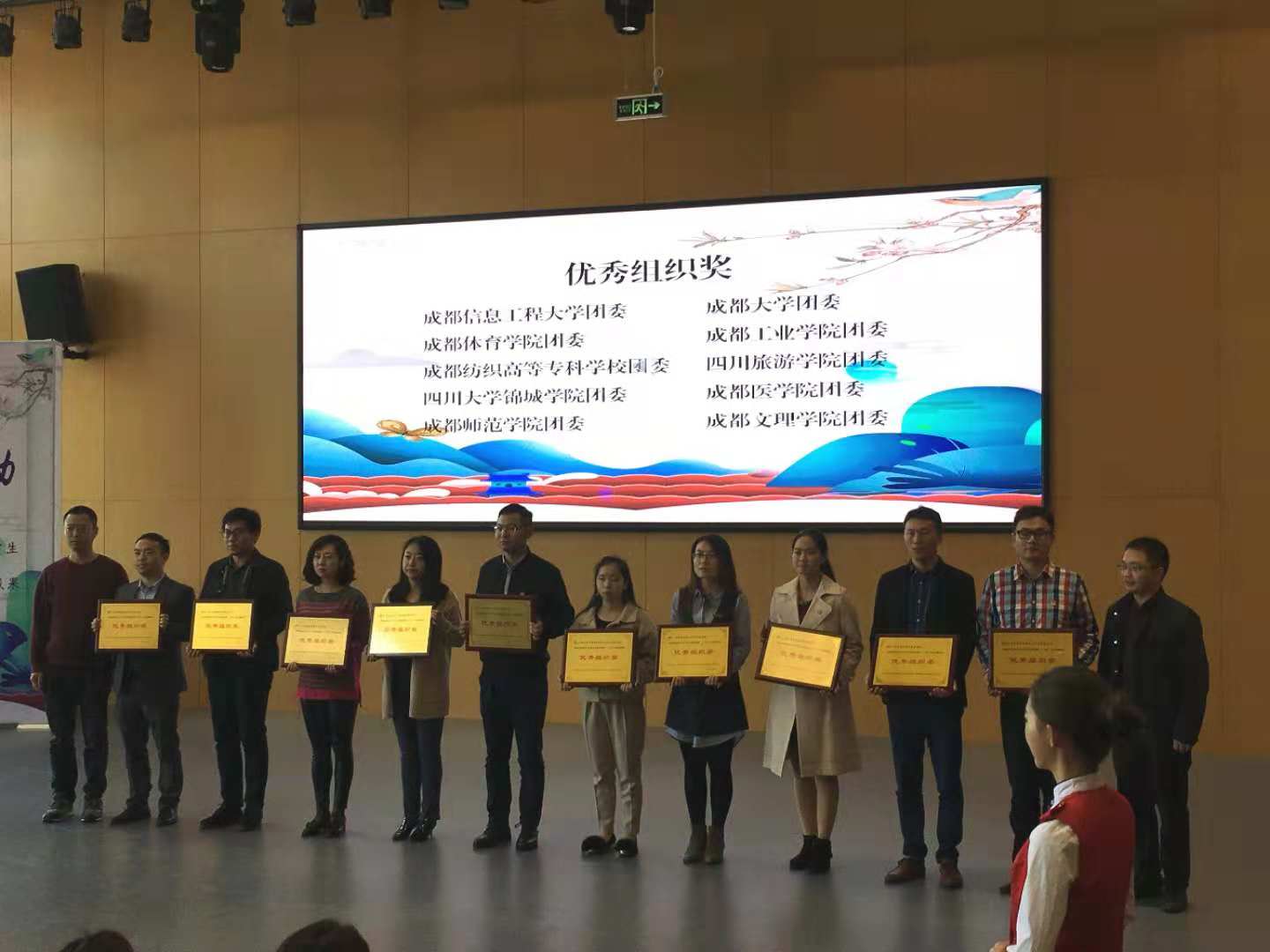 【本网讯】10月30日下午,2018年成都市大中专学生志愿者暑期“三下乡”社会实践活动成果展示暨工作总结会在成都大学举行。爱体育网页版团委荣获“优秀组织奖”,学校“崇雅传统文化实践小分队” “践出真知,创行未来实践团队” “青马工程博雅班小分队”获得“优秀团队”荣誉称号,倪涛、胡敏、王燕等三位老师荣获“优秀指导教师”荣誉称号。