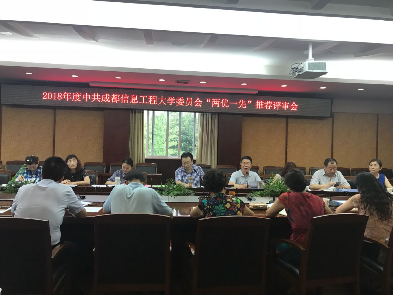 【本网讯】为发挥党内功勋荣誉表彰的精神引领、典型示范作用,推动学校形成见贤思齐、崇尚先进、争做先锋的良好氛围,6月25日下午,学校2018年度“两优一先推荐评审会在航空港校区顺利召开,择优评选优秀党员、优秀党务工作者、先进基层党组织。党委书记周激流,党政办公室、党委组织部、宣传统战部、纪委办公室(监察处)、学生工作处、保卫处负责人及全体党总支书记参会。