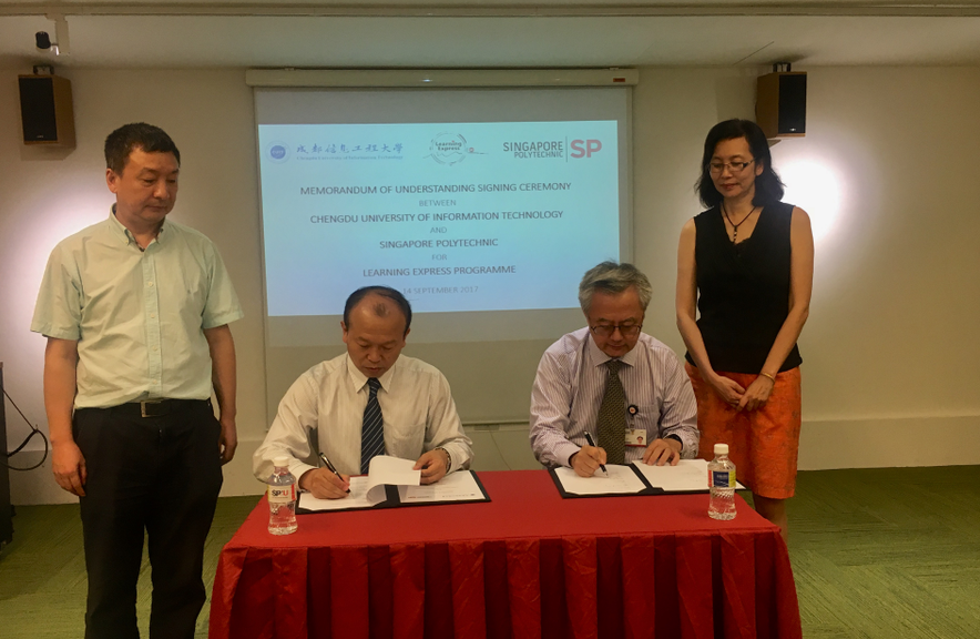 论坛期间,何建新一行受到新加坡理工学院副校长HEE JOH LIANG的热烈欢迎,双方针对两校长期以来共同探讨的CDIO教师培训、学生创新工程实践两个项目的开展交换了意见,并签署《爱体育网页版与新加坡理工学院合作谅解备忘录-创新工程实践项目》。目前计划尽快启动该项目,选派相关教师赴新加坡理工学院进行培训,预计明年3月,新加坡理工学院的师生代表团将与我校师生联合开展创新工程实践项目。