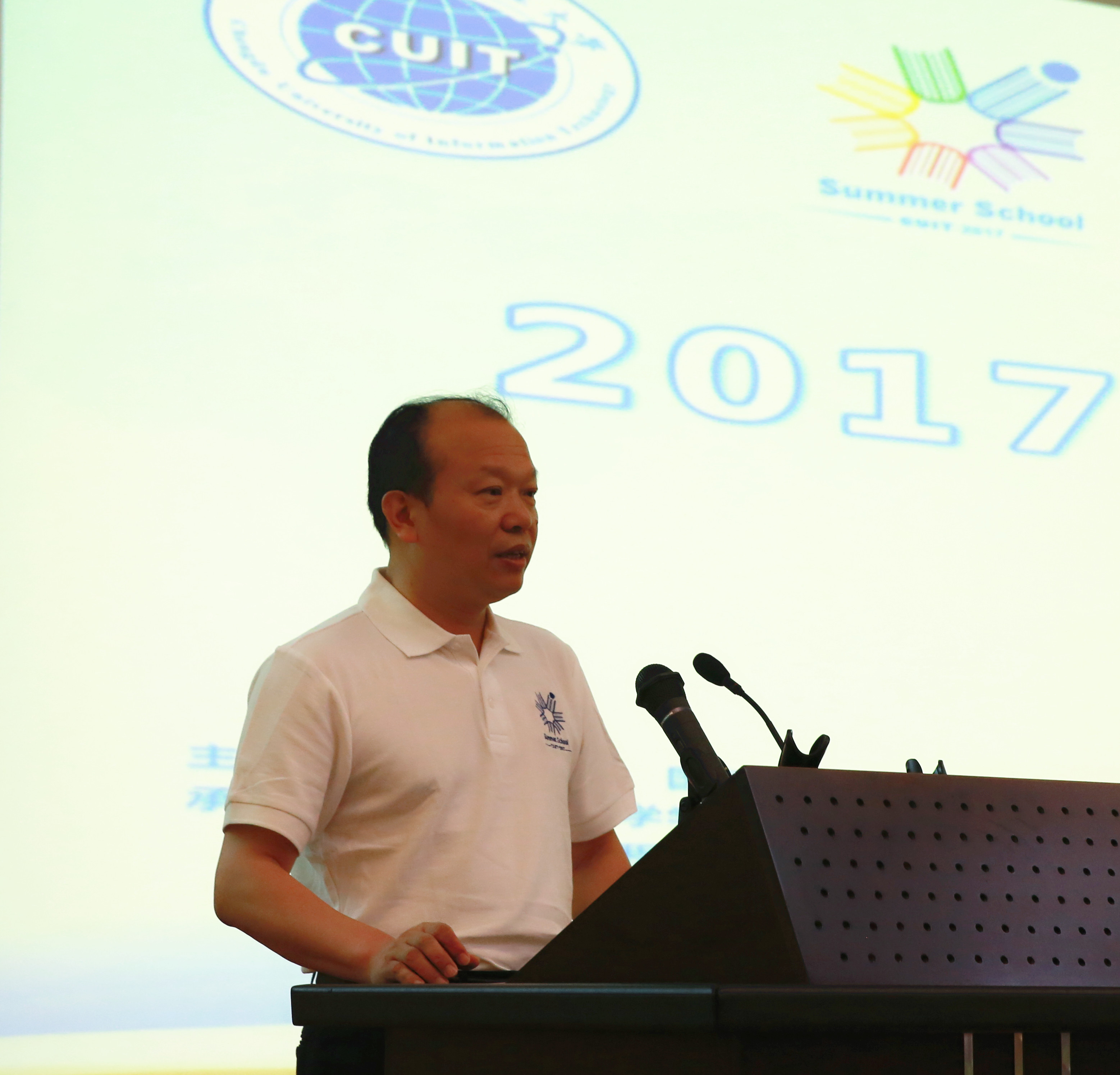 【本网讯】7月12日,学校2017年暑期国际教育周(2017 Summer School of CUIT)在学校国际会议厅盛大开幕。本次暑期国际教育周邀请了11个国家的21位外籍专家,分别来自哥伦比亚大学、美国科罗拉多州立大学、皇家墨尔本理工学院等国际知名学府,全体外籍专家与16个学院学生代表齐聚一堂,共同开启了此次活动。学校副校长何建新以及学校有关单位负责人参加了开幕式。