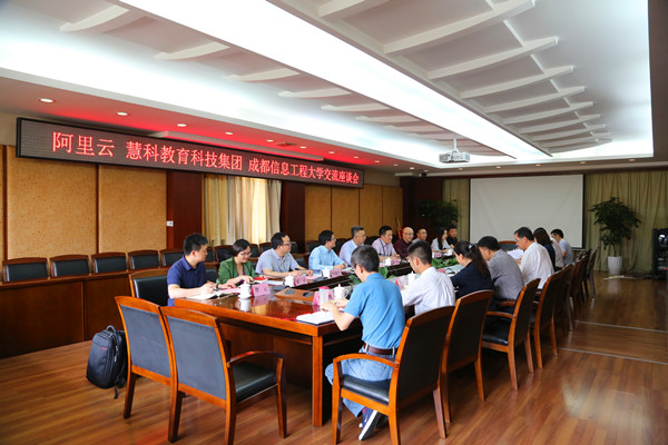 【本网讯】5月23日下午,阿里云、慧科与学校合作交流会在航空港校区七会议室举行,就大数据学院建设进行洽谈。阿里云运营总经理杨名,慧科教育科技集团有限公司CEO岳喜伟一行,学校校长余敏明,副校长何建新参加了会议。会议由何建新主持。