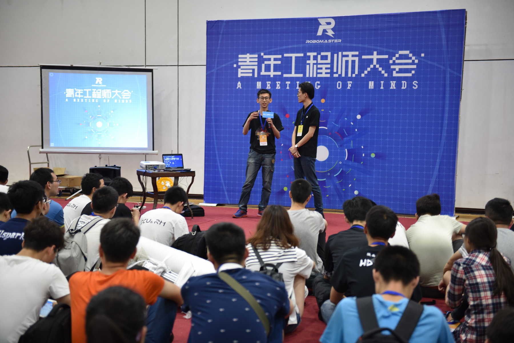 闭幕式后,RoboMaster青年工程师大会在体育馆举行,各参赛队队员聚集在一起,与来自企业的核心工程师从机械、电控、视觉等多方面进行了机器人战车技术经验的分享,总结分区赛经验问题。
