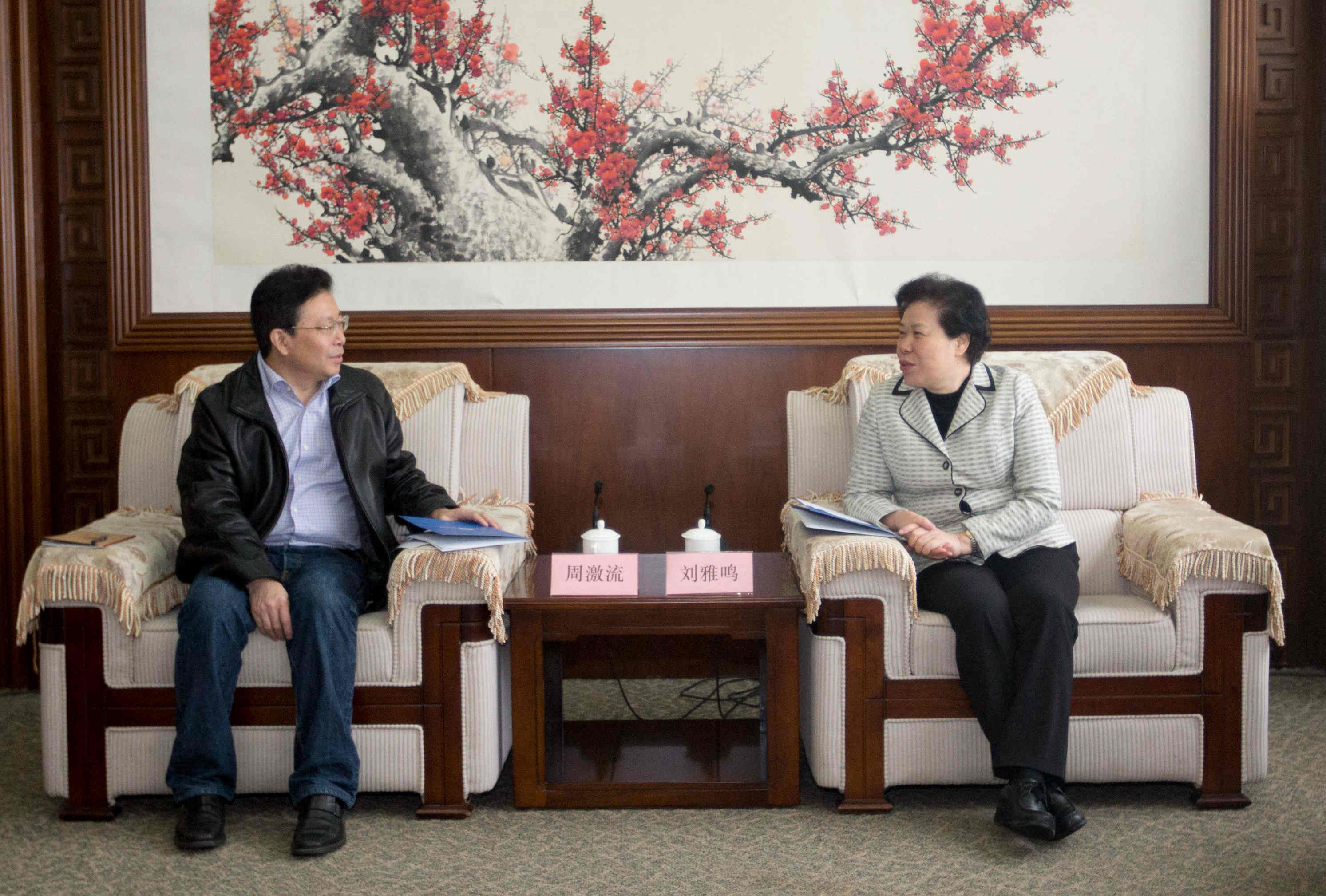 刘雅鸣与周激流亲切交谈