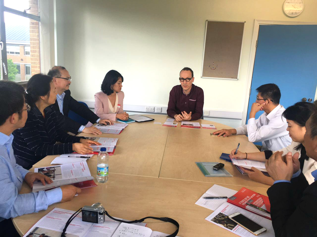 代表团一行前往雷丁大学国际办公室,了解了其完善的国际合作体系和国际留学生工作,并与国际语言中心主任Bruce Howell以及亚洲项目负责人张书、中国项目负责人刘明进行交流,主要就两校国际项目合作和文化交流方面的师生互访模式、语言水平标准等问题进行了讨论。