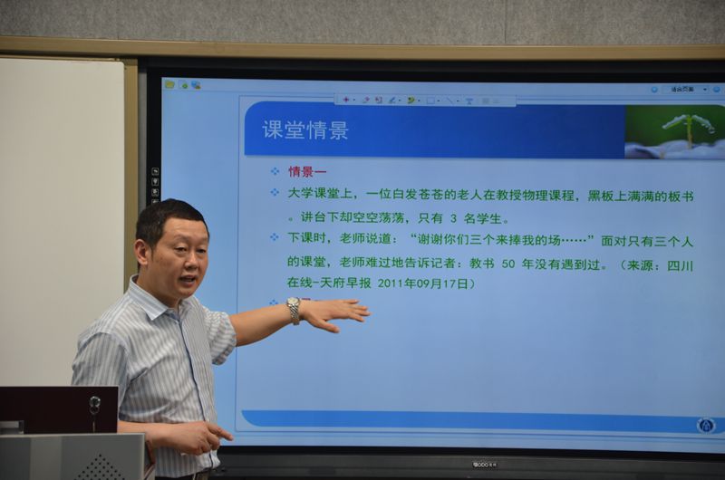 本次讲座题为《大学课堂危机与应对》,由西南大学教务处处长吴能表教授主讲,并通过教育部网培中心平台面向全国高校进行网络直播,也是我校首次承办的全国网络直播讲座。教育部网培中心西南地区负责人王进专程到校主持了本次讲座,我校的20余位教师与全国400余名高校教师一起,通过到现场或观看网络直播的形式,聆听了本次讲座。教师教学发展与评估中心全程做好了本次讲座直播的各项准备协调工作,学校信息中心、教务处有关工作人员提供了大力支持。