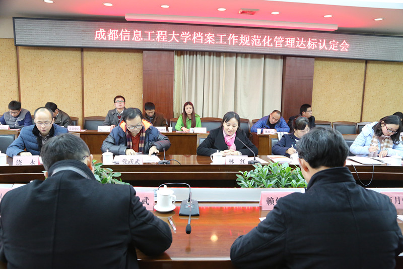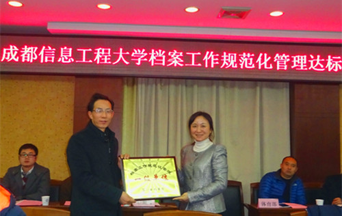 【本网讯】12月29日,由省档案局经济科技档案业务指导处处长林红为组长,省档案局经济科技档案业务指导处副处长王晓瑜、四川大学档案馆馆长党跃武、电子科技大学档案馆馆长饶永,省档案局经济科技档案业务指导处副主任科员刘荔枝组成的四川省档案工作规范化管理定级考评专家组莅临我校,对我校档案工作规范化管理省一级标准资格进行了考评认定。经过专家组评审,我校档案工作规范化管理达到四川省一级标准。专家组组长林红为我校颁发证书并授牌,学校党委书记赖廷谦代表学校接受证书和牌匾。
