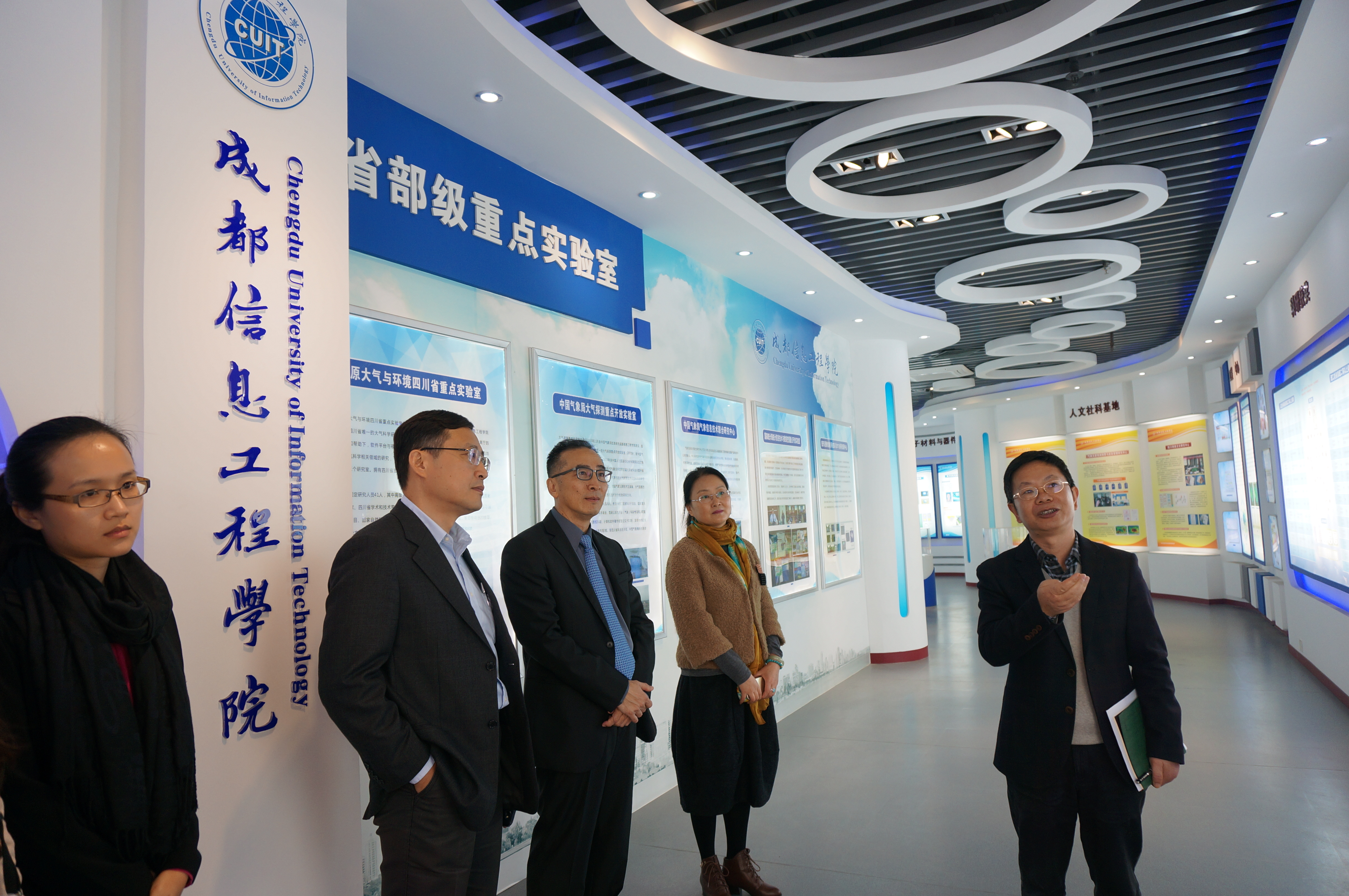 会后,为了使来宾对我校学科特色与科研情况有更直观、更全面的了解,段黔冰、董一平、图书馆黄波副馆长陪同来宾参观了我校图书馆、校史馆、科技馆、气象实验室、大气观测场等。经过详实介绍,使来宾对我校传统优势学科留下了深刻印象。高振山参观完后表示,两校在理工科方面可以建立长期深入的合作关系。
