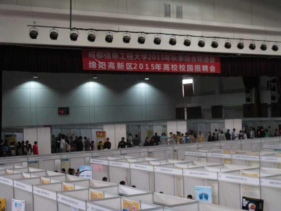 【本网讯】10月29日下午,我校与绵阳高新区联合主办的“2015年秋季双选会暨绵阳高新区招聘会”在航空港校区体育馆举办,参加此次双选会的用人单位共有230余家,提供就业岗位4000余个,覆盖我校所有专业,吸引了校内外2000余名毕业生现场求职,取得了预期的效果。