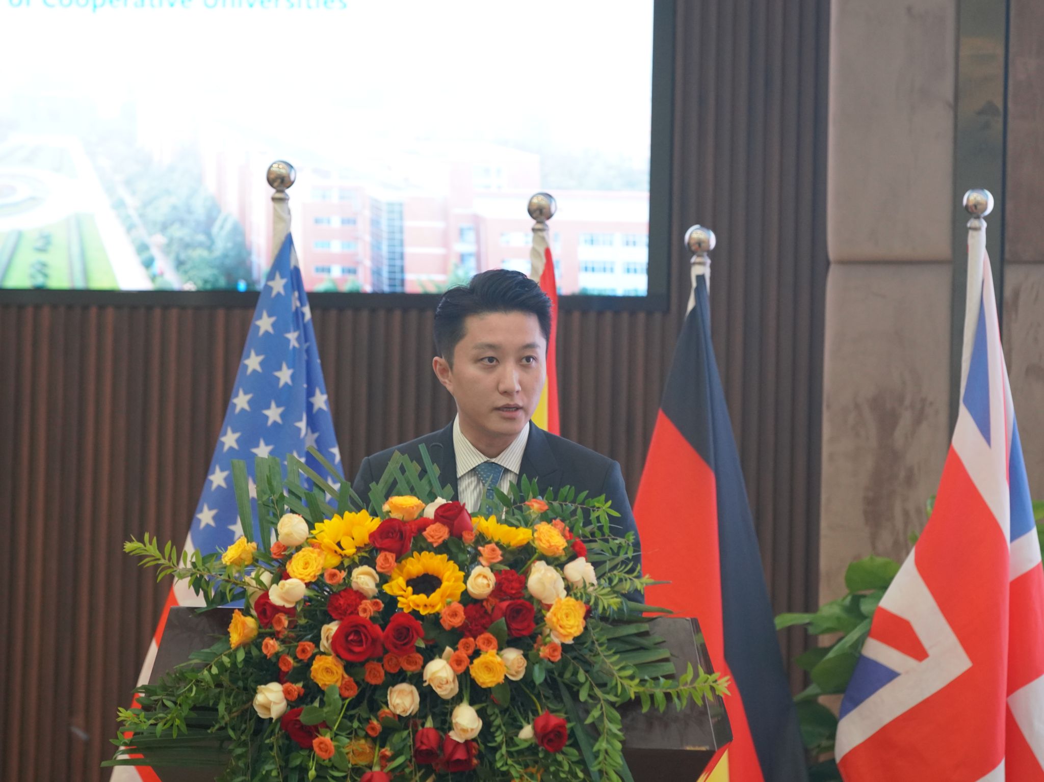 西班牙康普顿斯大学黄子源先生代表合作院校致辞并分享了对国际教育的看法。他指出,正是国际教育把世界不同文明、国家、肤色、语言的人团结在一起,共同学习和发展,以教育交流合作推动构建人类命运共同体。