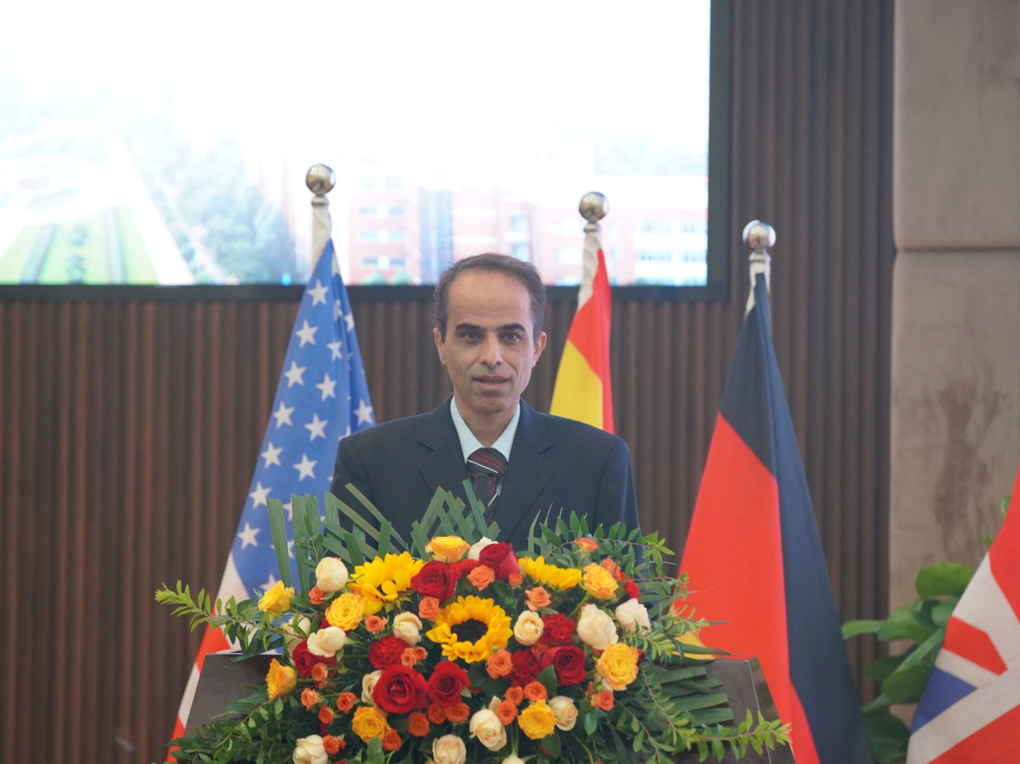 学校高端外籍专家代表MOUDI MAHDI致辞,他分享了作为外籍专家在学校学习和工作的经历以及对国际教育的理解。