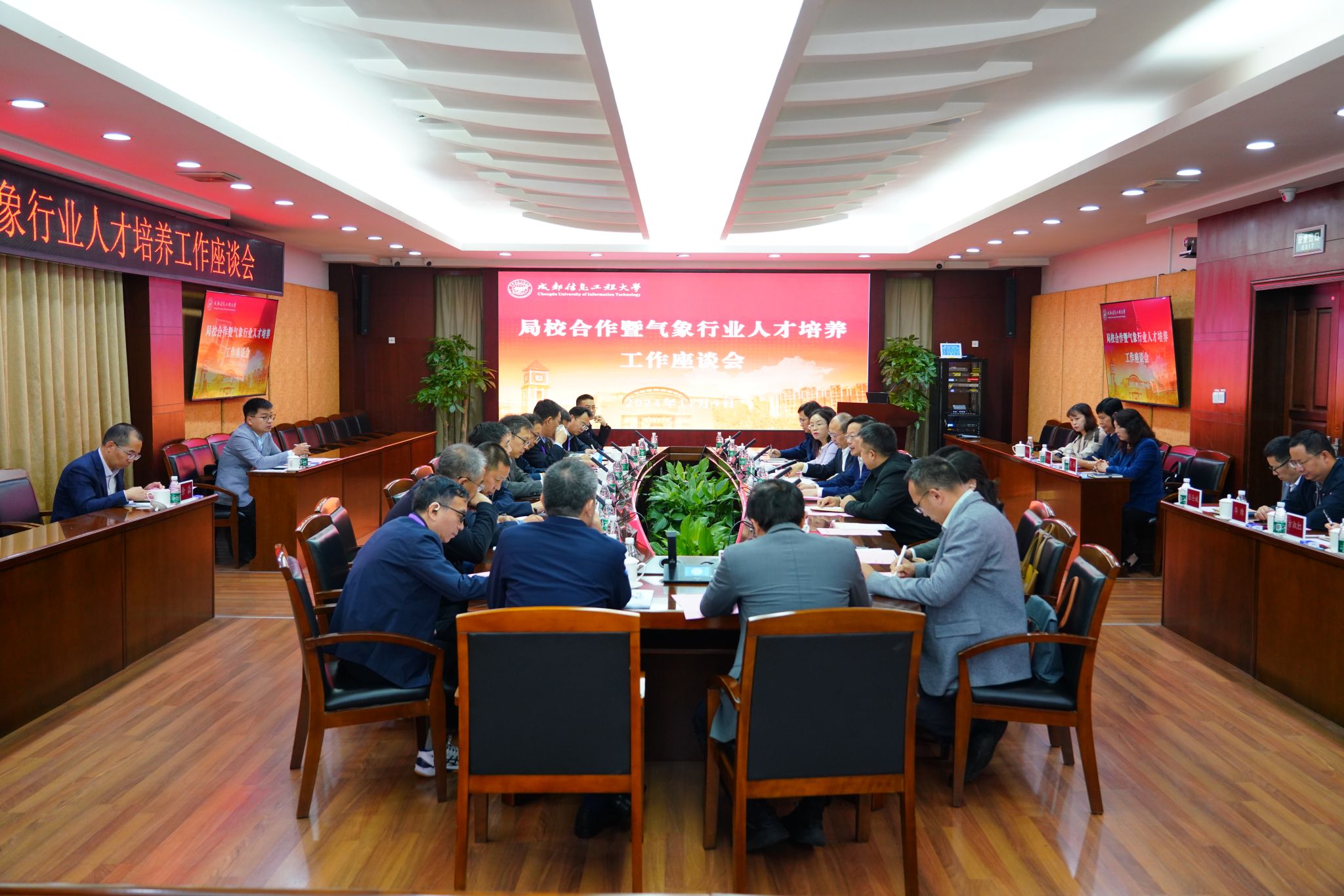 【本网讯】11月9日上午,局校合作暨气象行业人才培养工作座谈会在学校航空港校区行政楼第七会议室举行。中国气象局副局长张祖强、人事司副司长石雪峰,来校参加全国气象部门2025年度人才招聘会的中国气象局与各省(自治区、直辖市)气象局和兄弟院校的相关负责同志,学校党委书记沈火明、校长何建新参加座谈会。何建新主持会议。