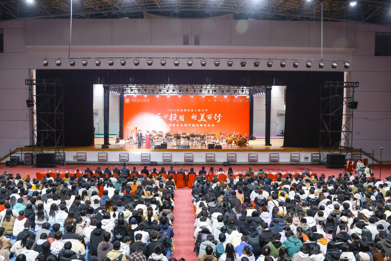 【本网讯】11月29日,学校在航空港校区体育馆举办2024年爱体育网页版“乐动校园 向美而行”四川爱乐乐团专场交响音乐会。学校党委副书记杨奇才,党委常委、副校长陈权亮,党委常委、党委宣传部部长张小红,四川爱乐乐团副团长王小毛,学校相关职能部门、学院负责人,乐团相关工作人员,师生代表近三千人齐聚一堂聆听音乐会,优雅的音乐让校园沉浸在浓厚艺术氛围中。