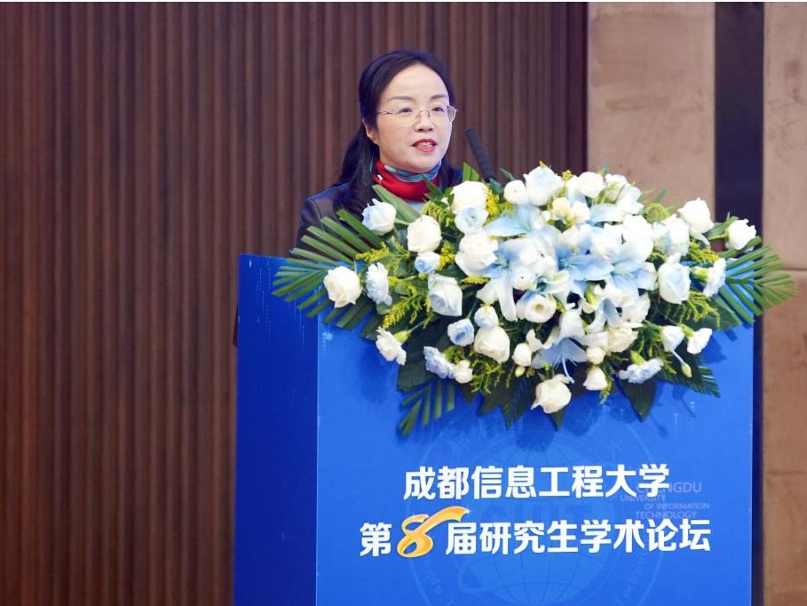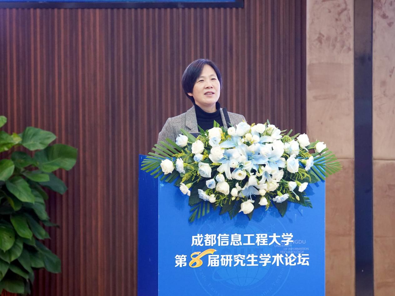罗小蓉在致辞中回顾了近年我校在学科建设和研究生教育方面取得的成效。她强调了研究生学术论坛在激发创新热情、促进学术交流与合作方面的作用和意义;希望通过本届论坛进一步营造浓厚的学术氛围,助力广大研究生成长为驱动时代发展的优秀创新人才,为服务国家现代化建设贡献“成信”力量。