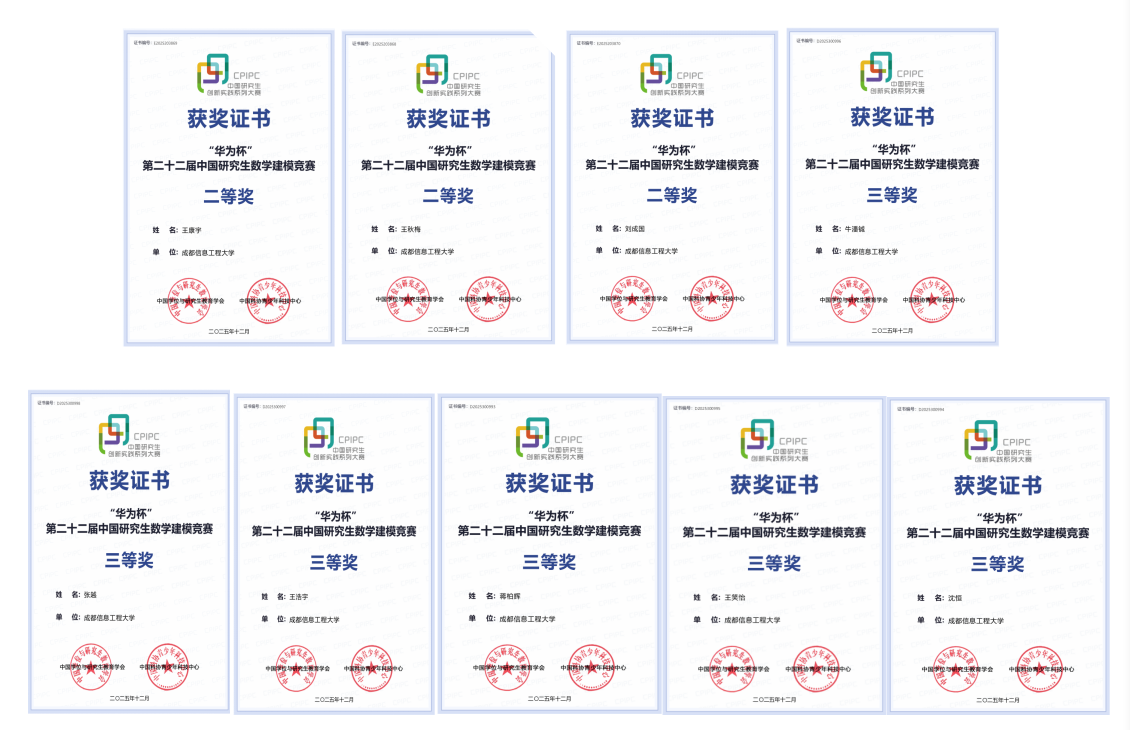 在我校获奖队伍中,由光电工程学院研究生(队员:王康宇、王秋梅、刘成国,指导老师:杨军、杨定宇)组成的团队,凭借其创新的建模思路、严谨的求解过程和出色的论文表现,成功荣获全国二等奖。来自应用数学学院和大气科学学院的两支研究生团队(队员:牛潘铖、王浩宇、张越,指导老师:张秋燕;队员:蒋柏辉、王笑怡、沈恒,指导老师:张秋燕)获得全国三等奖。