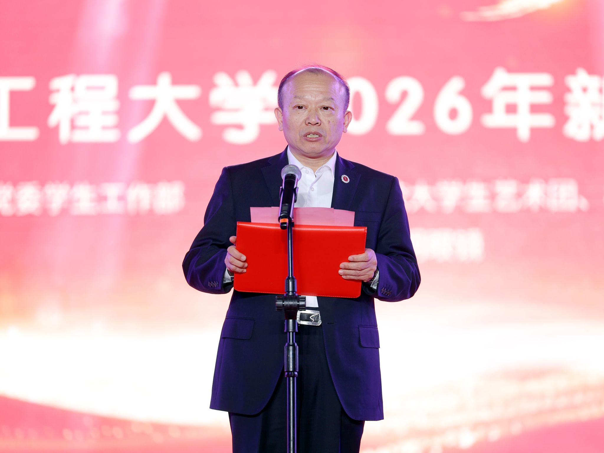 学校校长何建新发表新年致辞,代表学校党委、行政向全体教职员工和同学们致以诚挚的新年问候与美好祝愿。他回顾了2025年学校在党建引领、学科建设、人才培养等方面取得的丰硕成果。学校党建引领持续加强,思政工作扎实深入,“三全育人”成效显著;办学实力持续增强,新增推荐免试研究生资格,新增两个学科进入ESI全球前1%,科研创新彰显硬核担当;校园建设与人才培养同步提升,学生在国家级竞赛中获奖近800项,学习生活环境不断优化。展望2026年,他勉励全体成信人秉承 “成于大气,信达天下”的校训精神,聚焦内涵建设、育人质量提升等方面工作携手开启学校高质量发展新征程。