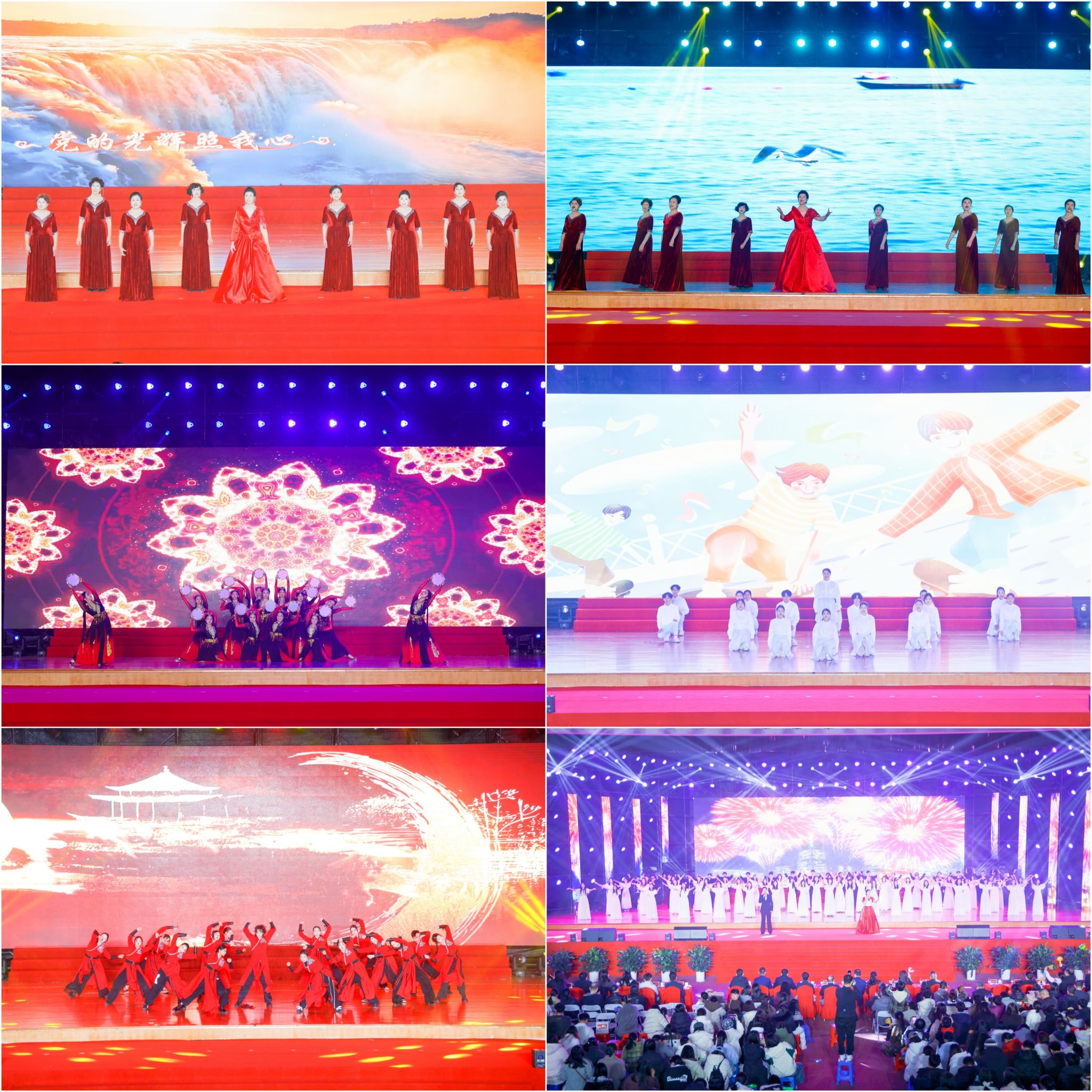 晚会在气势恢宏的器乐合奏《盛世鼓乐》中拉开帷幕,铿锵的鼓点奏响了新年的序曲。晚会由“信韵风华”“同心筑梦”“新程启航”三个篇章组成,15个节目形式多样、精彩纷呈。流行舞《好日子》活力四射,点燃现场气氛;教师合唱《雪花的快乐》清澈悠扬,传递冬日温情;民族舞《额尔古纳河》以刚柔并济的舞姿,演绎出母亲河的辽阔与深沉。情景诗朗诵《蜀韵诗仙行》带领观众穿越千年,领略巴蜀诗风的浪漫豪迈。