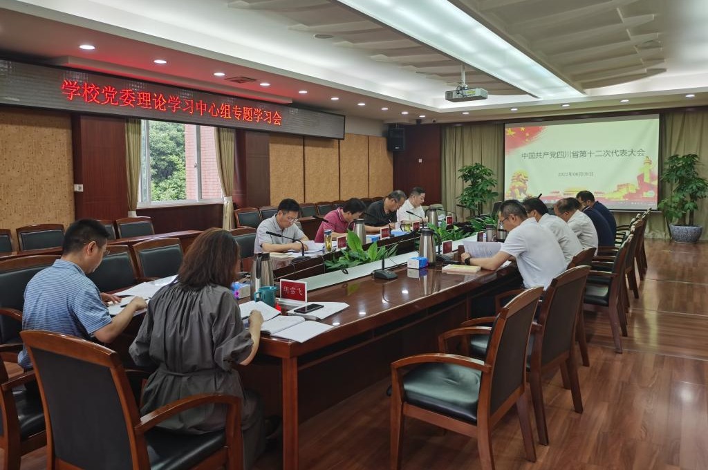 【本网讯】6月9日,学校党委理论学习中心组在行政楼第七会议室召开专题学习会,传达学习习近平总书记系列重要讲话精神、四川省第十二次党代会精神以及上级文件精神。会议由学校党委书记周激流主持。