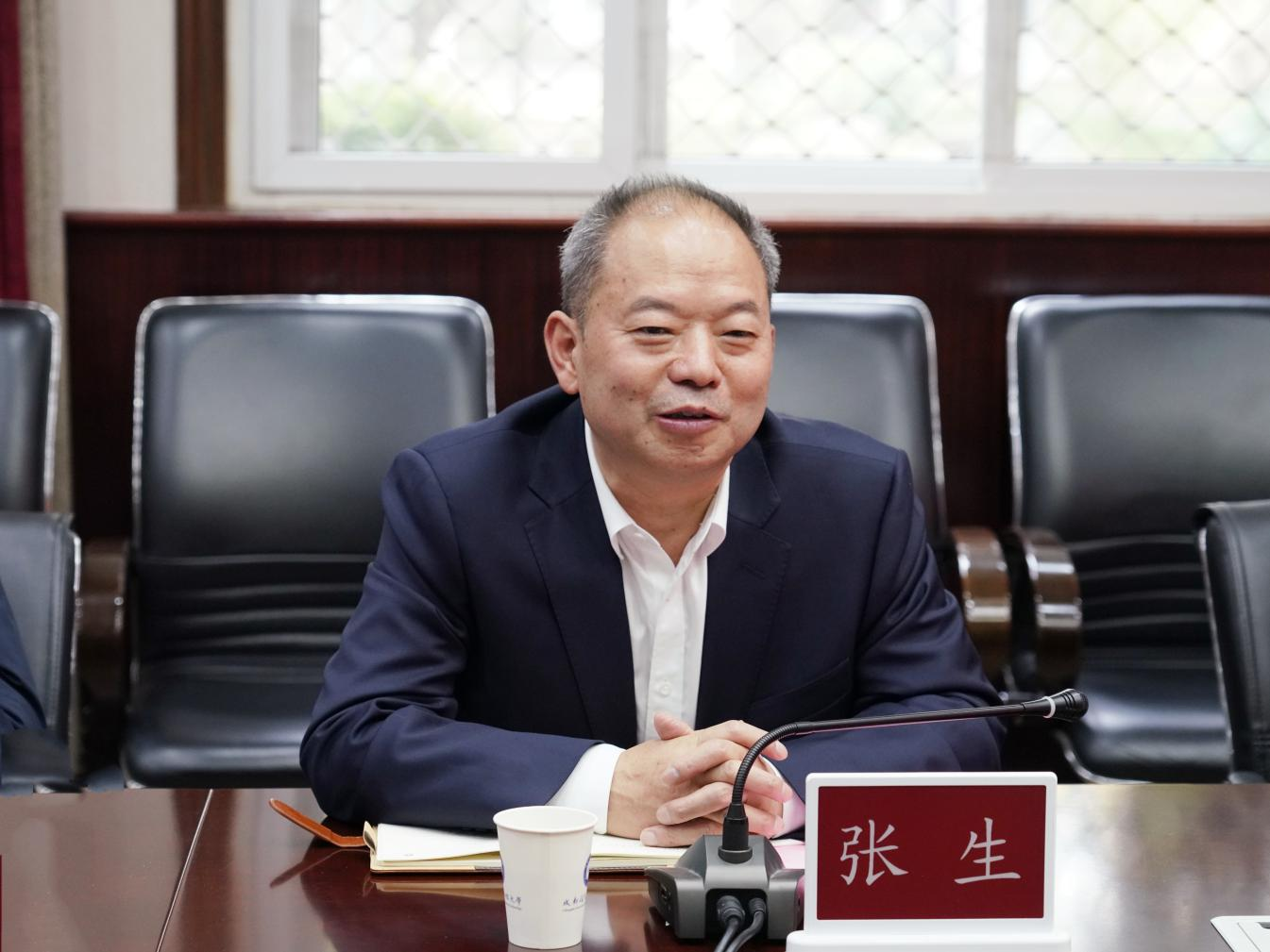 舒红平代表学校对张生一行表示热烈欢迎,并简要介绍了学校的基本情况、学科特色和科研优势。他结合两校专业契合度高的特点,提出可在学科共建、人才共育、科研合作、成果转化、信息化建设及社会服务等方面加强交流、深化协同,推动两校高质量发展,助力区域产业升级。
