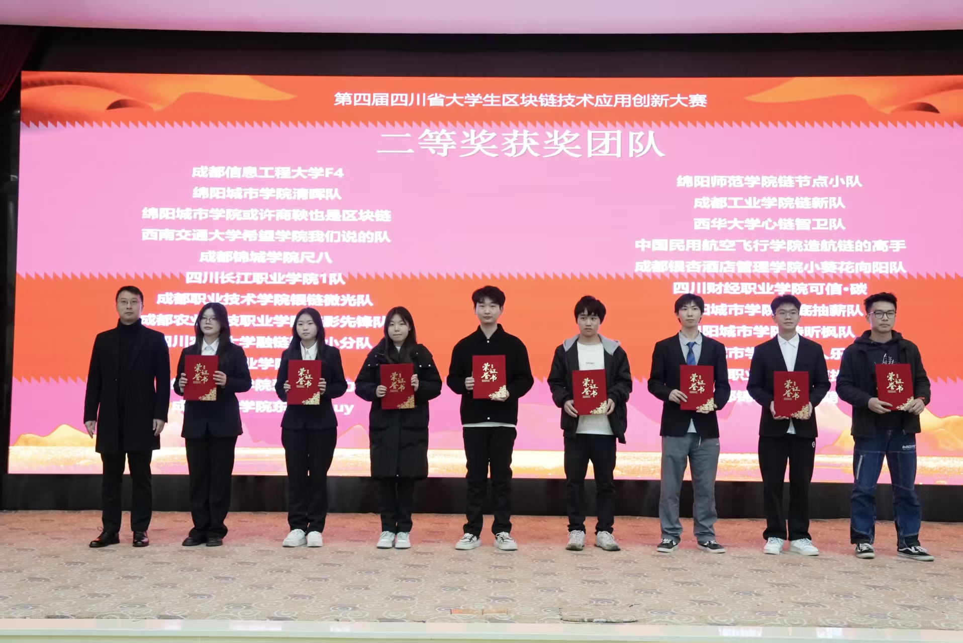 【本网讯】11月22日,第四届四川省大学生区块链技术应用创新大赛决赛暨颁奖典礼在我校举办。本次大赛由四川省教育厅主办,爱体育网页版承办,成都市经济和信息化局新经济发展委员会、成都市区块链产业发展联盟、新道科技股份有限公司和西南民族大学共同参与。学校党委副书记杨奇才、新道科技股份有限公司助理总裁兼西南地区总经理侯爱华等出席典礼并致辞。学校人工智能学院副院长邹茂扬主持颁奖典礼。