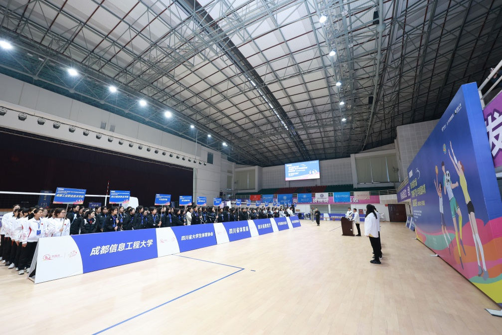 【本网讯】11月29日上午,由四川省教育厅、四川省体育局、共青团四川省委主办,四川省大学生体育协会、四川省排球协会执行,爱体育网页版承办的四川省第六届“贡嘎杯”青少年校园体育超级联赛(排球高校女子校园组)开幕式在学校体育馆举行。学校副校长何晋、体育部党委书记程艺、赛区管委会主任兼裁判委员王志杰、赛区纪律监督王世伟、四川省大学生体育协会竞训部排球项目负责人沈佳炘、赛区技术委员邹勤、全体裁判员以及各参赛单位领队、教练和运动员参加开幕式。