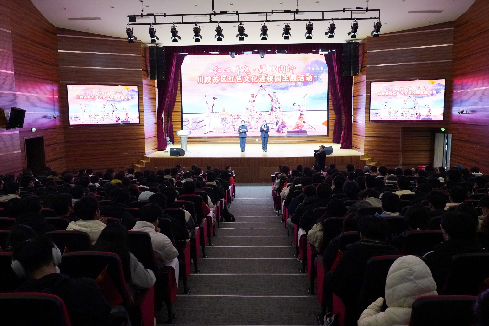 庞虎围绕《以青春之我 践时代之诺》主题,深入浅出、形象生动地为师生代表讲解了川陕苏区精神——“智勇坚定、排难创新、团结奋斗、不胜不休”的丰富内涵及其新时代传承路径。
