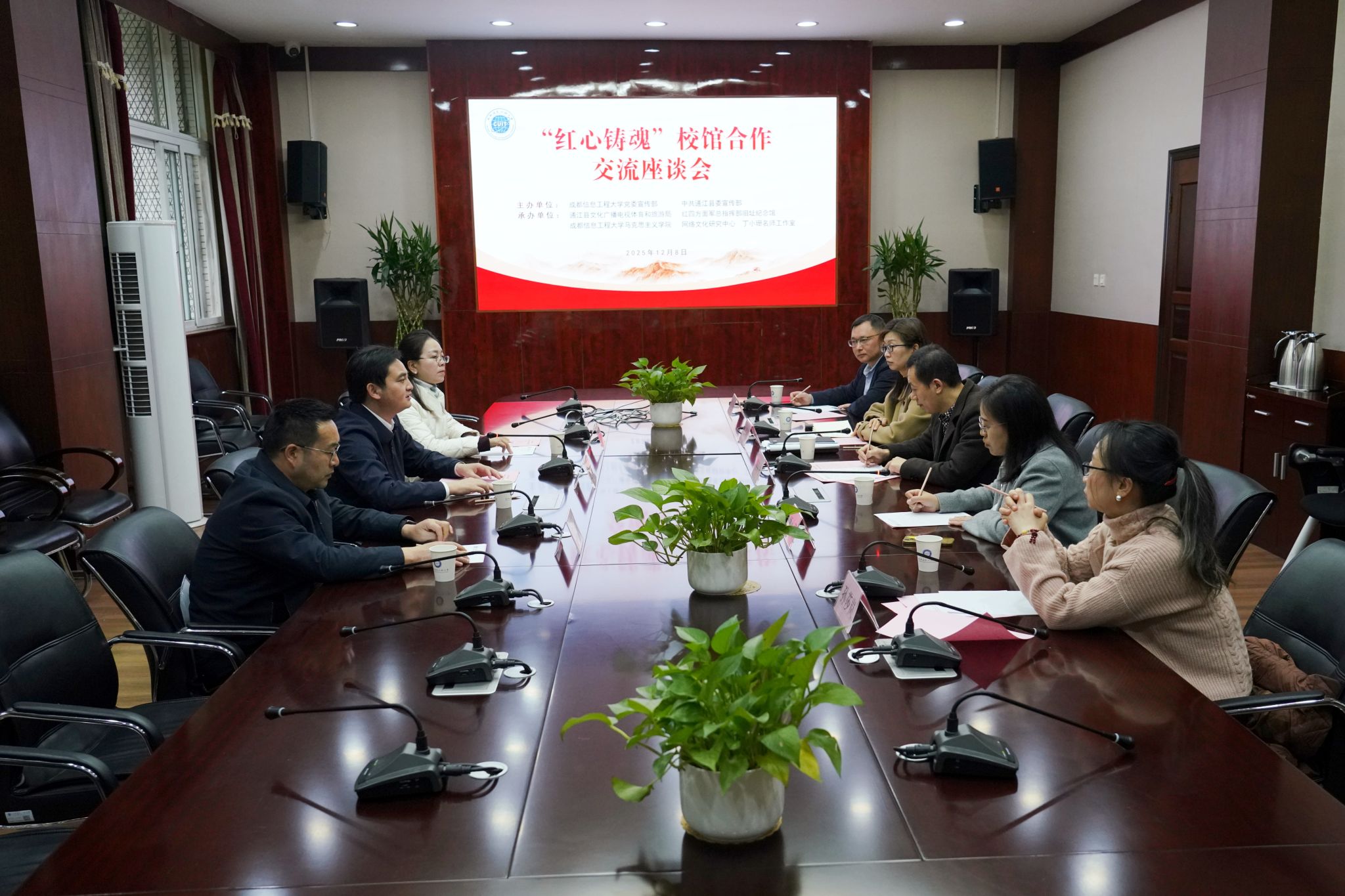 本次活动有“红心铸魂”校馆合作交流座谈会、成信礼堂室内活动、参观《川陕苏区红色文化历史展》三个部分。