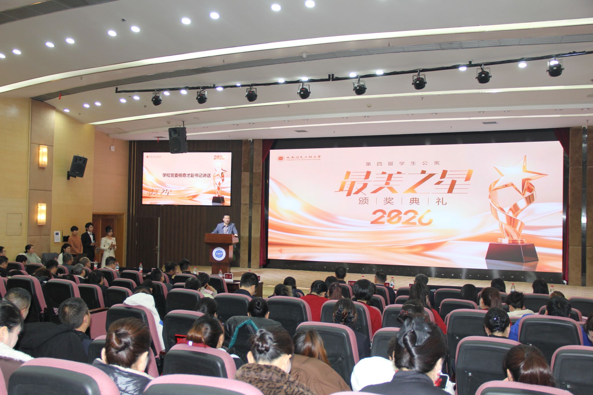 学生公寓“最美之星”评选活动始终以强化公寓服务队伍建设、持续完善成信后勤特色公寓文化品牌为目标,如今已成功举办四届,成为凝聚后勤力量、彰显育人温度的重要载体。未来,学校后勤管理工作将持续践行“杏勤耕耘”党建精神,守正创新、砥砺奋进,以榜样为引领深耕公寓育人阵地,不断提升后勤服务保障质效,为学校高质量发展再立新功、贡献更大力量。
