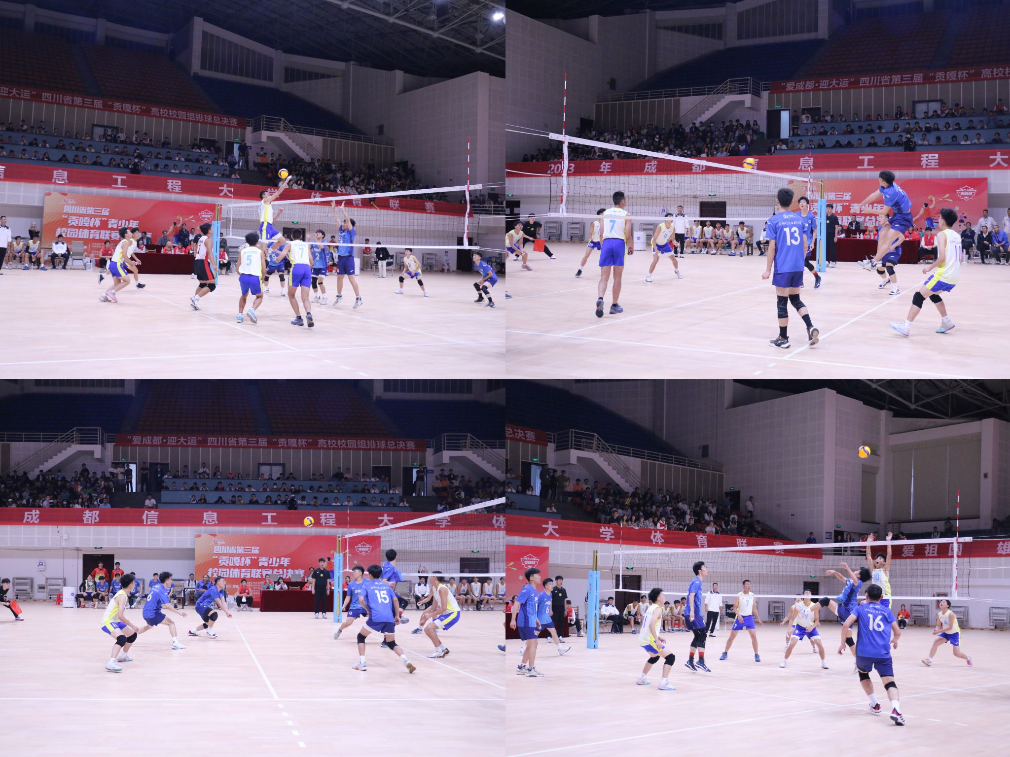 【本网讯】5月8日下午,由四川省教育厅、四川省体育局、共青团四川省委联合主办的四川省第三届“贡嘎杯”青少年校园排球联赛分区赛(高校男子组)比赛在我校航空港校区举行,本次比赛同时也是双流赛区排球场馆中心的一次实战演练。学校党委副书记、大运双流赛区委员会副主任马洪江,大运执委会竞赛部排球项目竞赛助理王恩芳,双流区政协副主席、大运双流赛区排球场馆中心主任刘昶等领导到现场观赛并指导活动。
