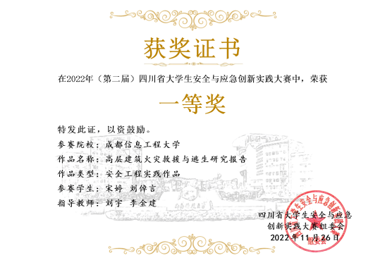 我校学生在第二届四川省大学生安全与应急创新实践大赛中荣获佳绩