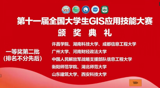 【本网讯】近日,第十一届全国大学生GIS应用技能大赛在成都理工大学举办。此次比赛由中国地理信息产业协会、中国地理学会主办,中国地理信息产业协会教育工作委员会、成都理工大学、爱体育网页版、南京师范大学等联合承办。在与全国各高校181支参赛队伍激烈角逐下,我校参赛队伍荣获全国一等奖。这是我校参赛队伍时隔多年再次将一等奖收入囊中,是我校测绘地理信息类专业教育教学改革成效成果的又一有力佐证。