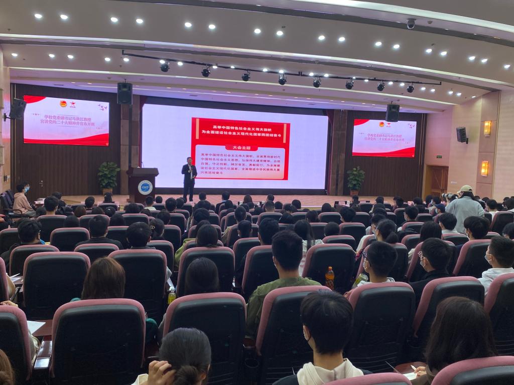 马洪江在开班致辞中指出,“青马工程”的使命担当就在于为党培养一批信仰坚定、能力突出、素质优良、作风过硬的青年政治骨干,“青马工程”学员要坚定理想信念、勇于担当尽责、踏实埋头苦干、矢志艰苦奋斗,争做新时代好青年。同时,他结合自身经历为在场师生对党的二十大精神进行了宣讲。他提到,刚刚闭幕的党的二十大对于全面建设社会主义现代化国家、全面推进中华民族伟大复兴具有十分重要的意义。学习领会党的二十大精神是一个长期渐进的过程,要结合自身实际去深学细悟;要把聚焦点和着力点放在加快推进高质量教育体系建设目标上来。他说,党的二十大报告第五部分提出“实施科教兴国战略,强化现代化建设人才支撑”,这是第一次单独成章对教育、科技、人才工作进行一体部署。高质量教育体系是科技力量可持续发展和创新要素可持续供给的保障,是源源不断培养造就高素质人才队伍的基础。同时,高水平的科技发展体系、充满活力的人才队伍又能极大激发教育的高质量发展。