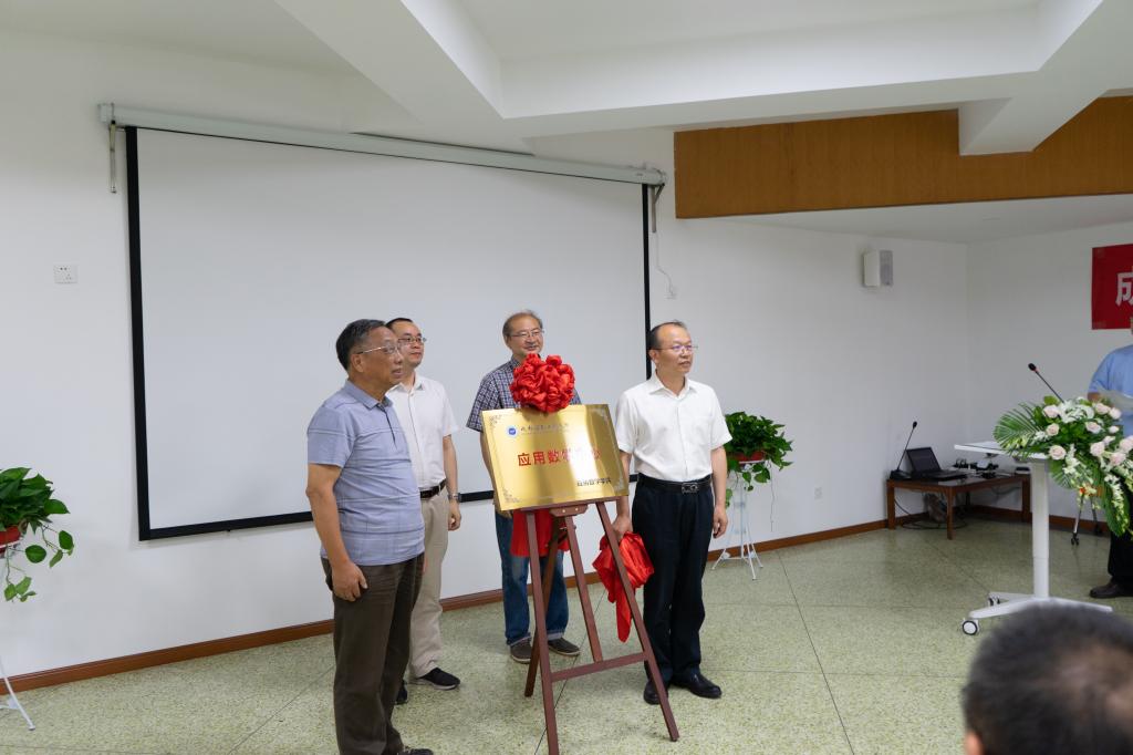 在与会人员共同见证下,何建新、李继彬共同为爱体育网页版应用数学中心揭牌。