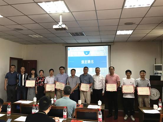 马洪江为电子工程学院校友理事会会长、副会长颁发聘书,缪燕平为电子工程学院校友理事会副秘书长颁发聘书。