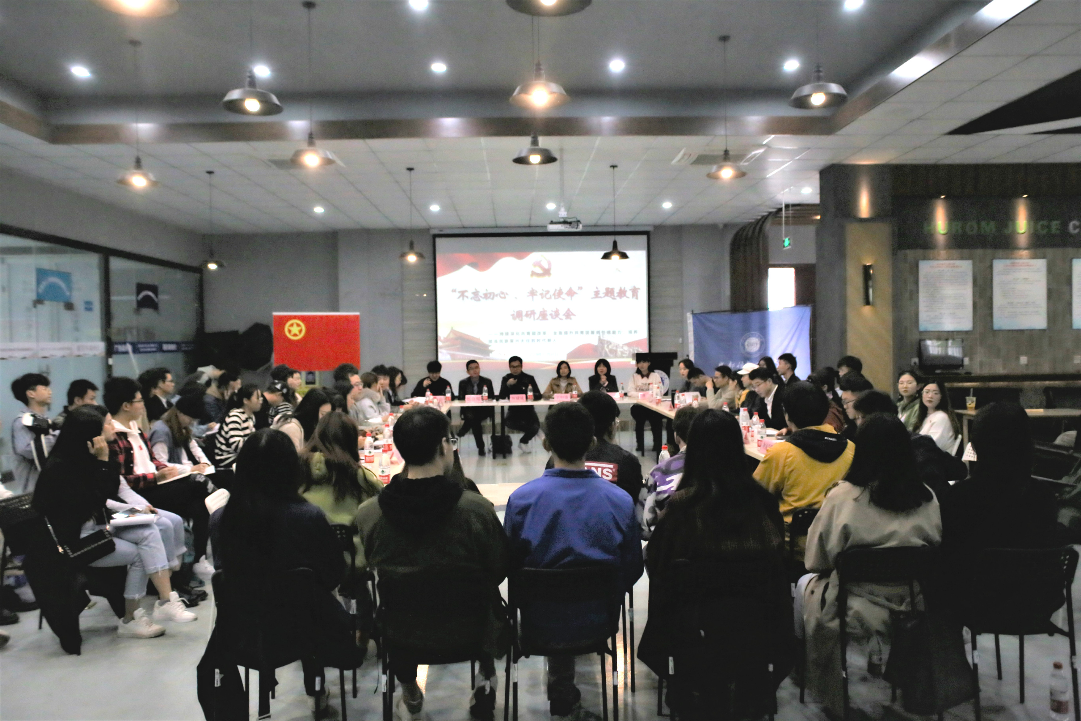 厉威成介绍了学校召开“不忘初心、牢记使命”共青团工作调研座谈会的背景及意义。与会的师生代表围绕党建带团建、思想政治引领、团干部成长、青年学生成才、第二课堂建设等主题,以问题为导向结合各自工作实际提出了意见和建议。