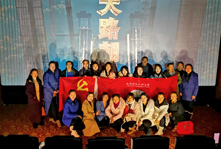 【本网讯】为庆祝改革开放40周年,了解40年来四川经济社会发展取得的伟大成就,根据省委宣传部、组织部、省总工会等通知要求,1月11日,文化艺术学院教师支部组织教师党员集中观看电影《大路朝天》。