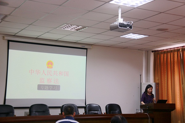 张小红带领全院教职工从“监察法的颁布实施以及重要地位”、“制定监察法的重要意义”、“制定监察法的指导思想”、“ 制定监察法的基本思路”、“监察法相关条款的解读”等方面对《中华人民共和国监察法》等辅导用书进行了充分详细的学习和解读。张小红强调,监察法是反腐败国家立法,对所有行使公权力的公职人员进行监管。《中华人民共和国监察法》第十五条第四款明确规定:“公办的教育、科研、文化、医疗卫生、体育等单位中从事管理的人员”在监察范围,即高校教育工作者在监管范围内。因此提醒全体教职工要时刻绷紧法纪的弦,严守纪律、按规办事,决不逾规越矩。最后,张小红部署并安排了学院全体教职工此次专题学习的目标和具体内容,并要求大家加强自身建设,增强依法依规履职的意识和能力,严格执行工作纪律和工作规程。