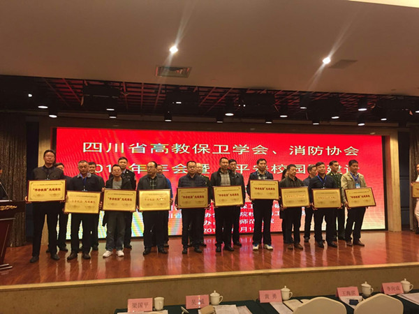 会上,省高教保卫学会、省高校消防协会对2016—2017年度“平安校园”建设工作进行了总结,对先进单位和个人进行了表彰。我校荣获四川省高校“平安校园”建设先进单位称号,我校2名保卫干部、4名安保队员以及4名学生也分别获得 “平安校园”建设先进个人称号。