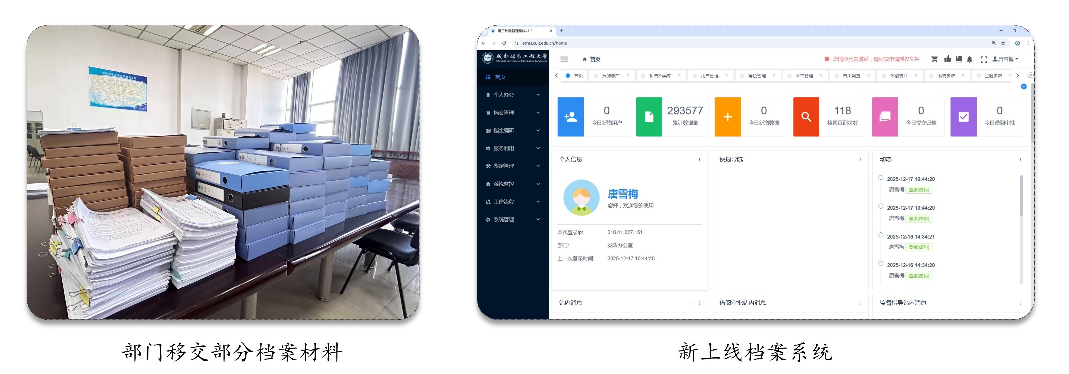 (四)强化党建引领,促进党建与业务双提升。深化“四有四强青蓝先锋”党建品牌建设,党政办公室支部获评校级优秀基层党支部,入选党建“双创”培育单位;1名同志获得四川省高等学校档案工作协会2025年会员大会“档案校史中的廉洁故事”宣讲大赛二等奖,1名同志获评校级优秀共产党员,1名同志获评校级管理服务先进个人。