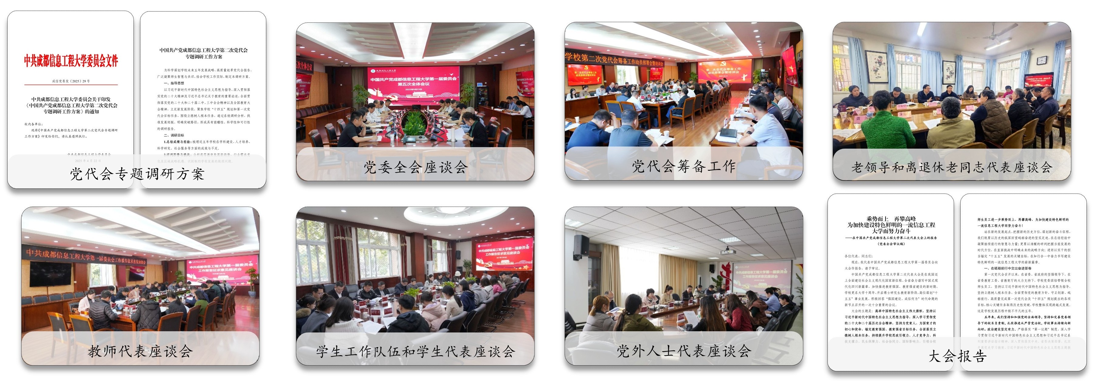 (一)扎实推进党代会筹备工作。在文稿起草方面,坚持“集思广益、精益求精”的原则,起草组深入开展调查研究,广泛征集各级党组织和师生代表的意见建议,历经数十次易稿和多轮专题研讨、集中打磨,高质量完成了题为《乘势而上再攀高峰为加快建设特色鲜明的一流信息工程大学而努力奋斗》的大会报告。同时,统筹完成了大会议程、主持词、决议草案等一系列重要会议文稿的起草工作。在会务筹备方面,制定了详尽的筹备工作方案,确保各项准备工作无缝衔接、万无一失,为党代会的胜利召开奠定了坚实基础。