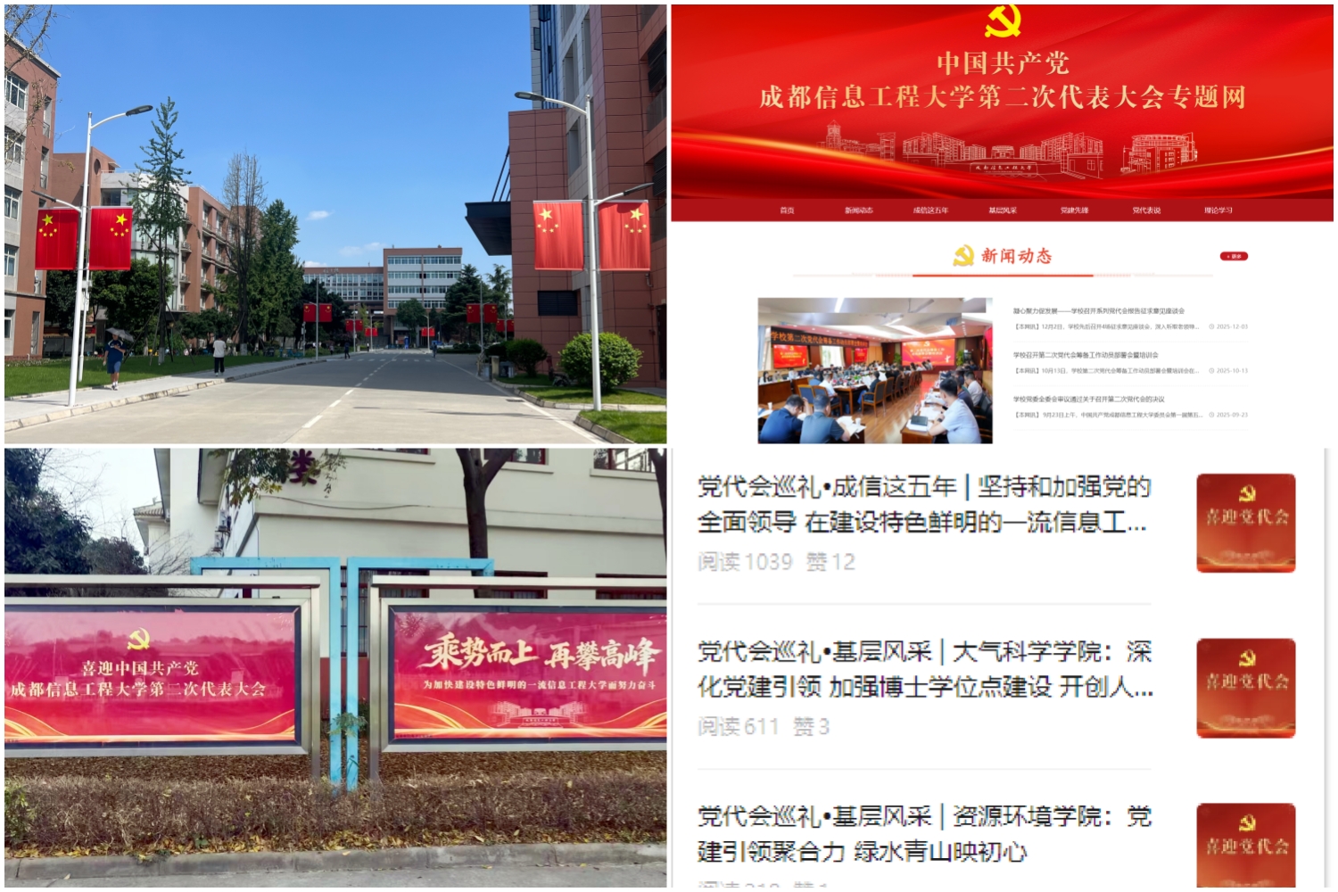 精准对接学校党代会等13次重大活动与重要节点,高质量完成主题氛围营造工作。围绕学校党代会,开设专题网站、推出系列推文、策划发展成就主题展,全面展示学校改革发展成果。积极组织师生参与“21天共读计划”、第八届四川大学生网络文化节等活动,成绩斐然(我校作品占全省高校“21天共读计划”优秀作品的近半数),获“学习强国”四川学习平台感谢信;1项作品被推荐至全国大学生网络文化节参评。