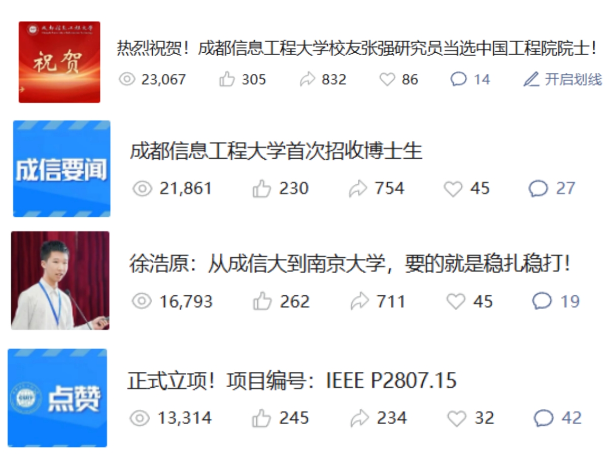 坚持内聚人心、外树形象,不断创新宣传手段,拓展传播渠道,着力讲好成信故事,传播好成信声音,提升学校社会美誉度和品牌辨识度。