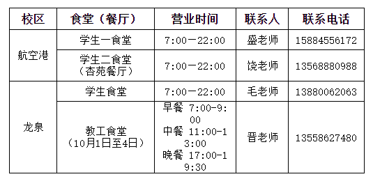 注:因龙泉校区学生食堂成信味道档口(保障窗口)10月1日至4日检修维护,故此期间教工食堂将作为保障窗口正常供餐。