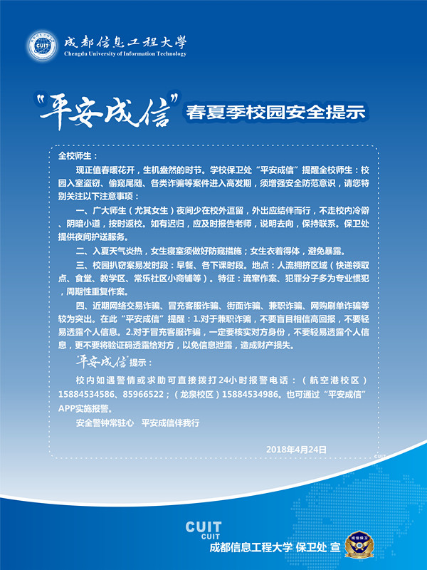 来源:保卫处 作者:范砚宇日期:2018-04-24 审核:新闻中心 点击: