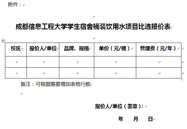 为进一步做好我校学生公寓饮水工作,保证饮用桶装水安全、健康、卫生,收费合理规范,我校将对两校区自管学生宿舍楼桶装水以密封报价的方式进行比选,欢迎各单位、个人前来报价。