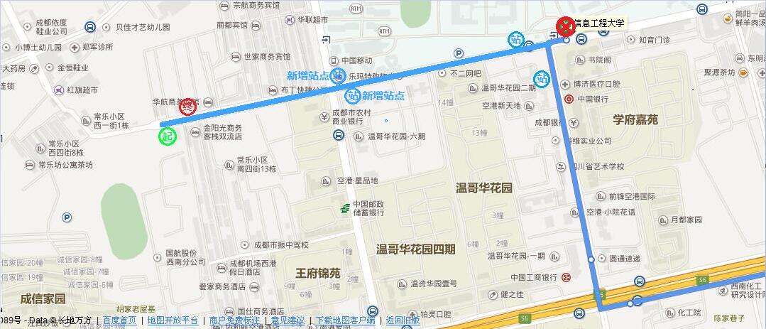 为解决成信家园教师住户交通出行,经学校后勤管理处与成都公共交通集团有限公司以及双流交通管理部门的反复沟通协调,拟于7月1日起调整304路公交车线路,起止站点为人南立交东站←→成信家园站,学校附近站点调整情况如下图: