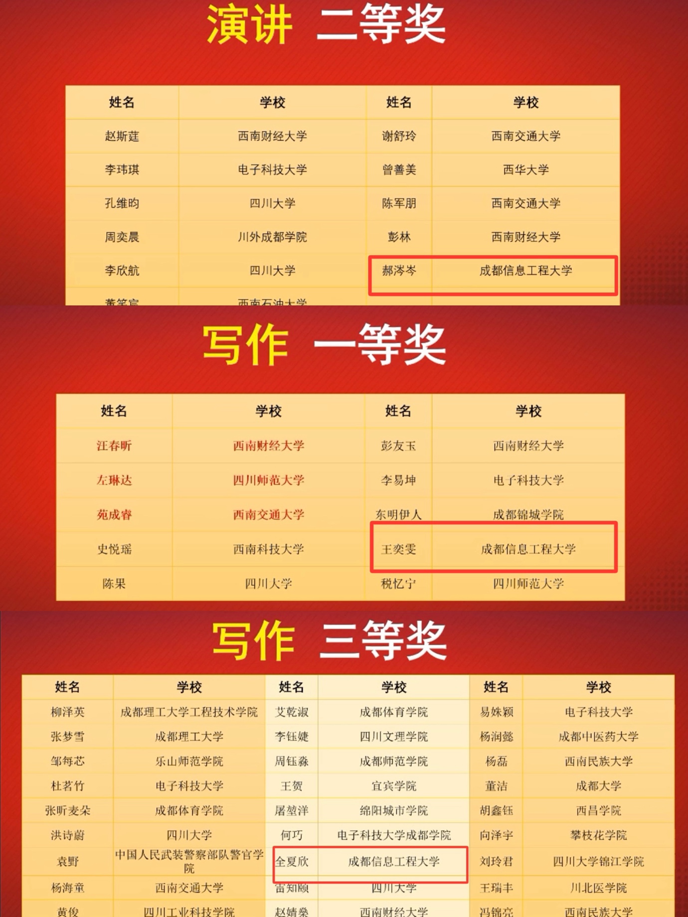 至此,2022年Uchallenge四川省大学生英语挑战赛决赛圆满结束。大学生英语挑战赛为我省学子提供了展示外语才华与青春风采的舞台,也为西部地区外语教育改革创新与育人成果转化搭建了沟通交流平台。