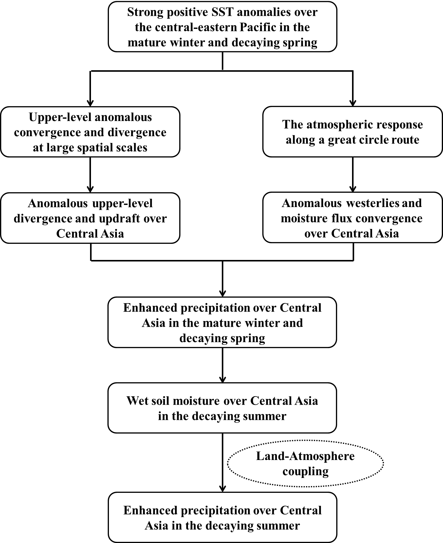 图 中亚降水对强厄尔尼诺事件响应的物理过程示意图